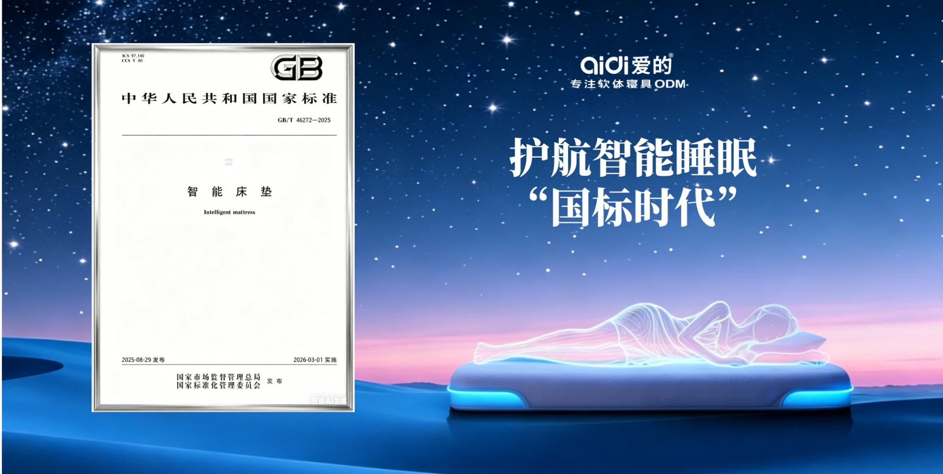 由国家市场监督管理总局(国家标准委)批准发布的 《智能床垫》(GB/T 46272-2025) 国家标准,已于2026年3月1日 起全面实施。这一标准为智能床垫产品的智能化、功能性、安全性设立了标尺,标志着中国智能睡眠产业正式迈入高质量发展的“国标时代”。